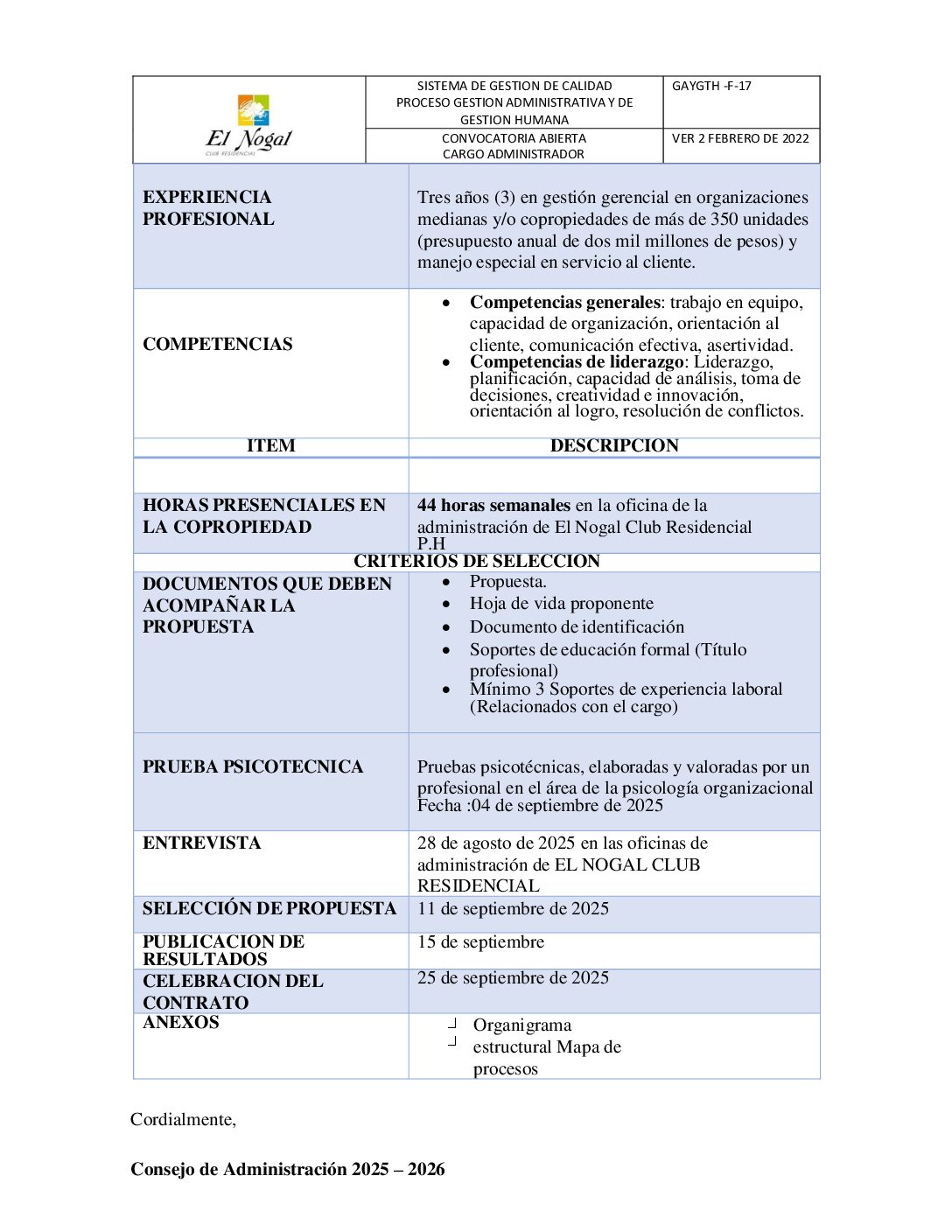 CONVOCATORIA ABIERTA -ADMINISTRADOR
