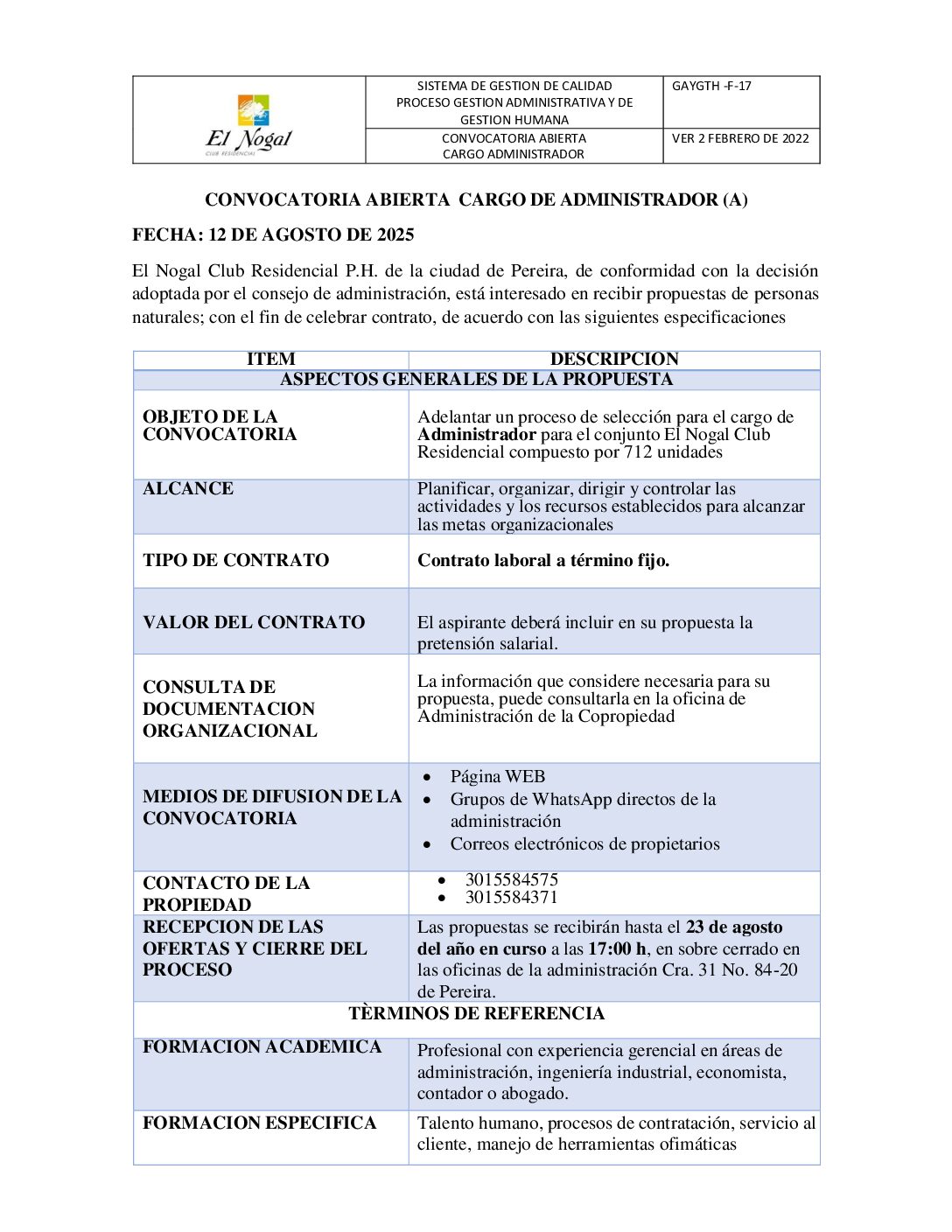 Bienvenidos al sitio web de El Nogal Club Residencial